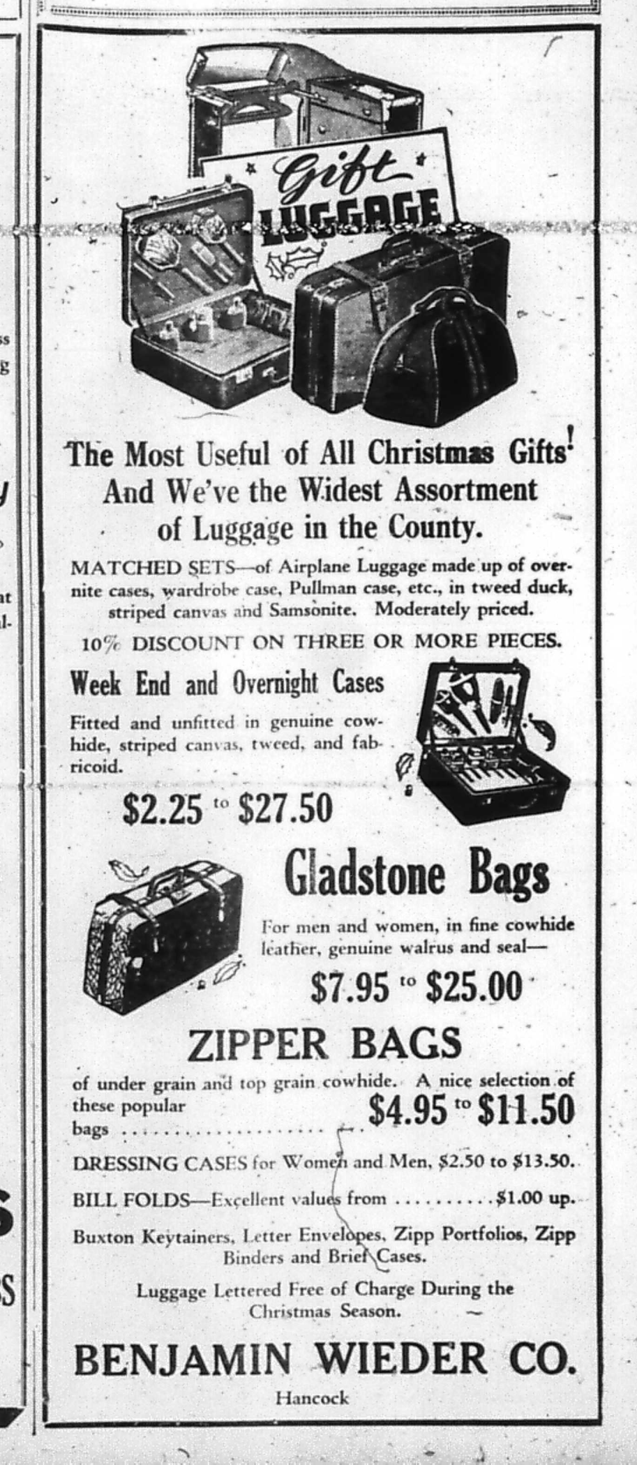 These ads are all from The Daily Mining Gazette, published on various days in December 1939 (click on an image to enlarge it).