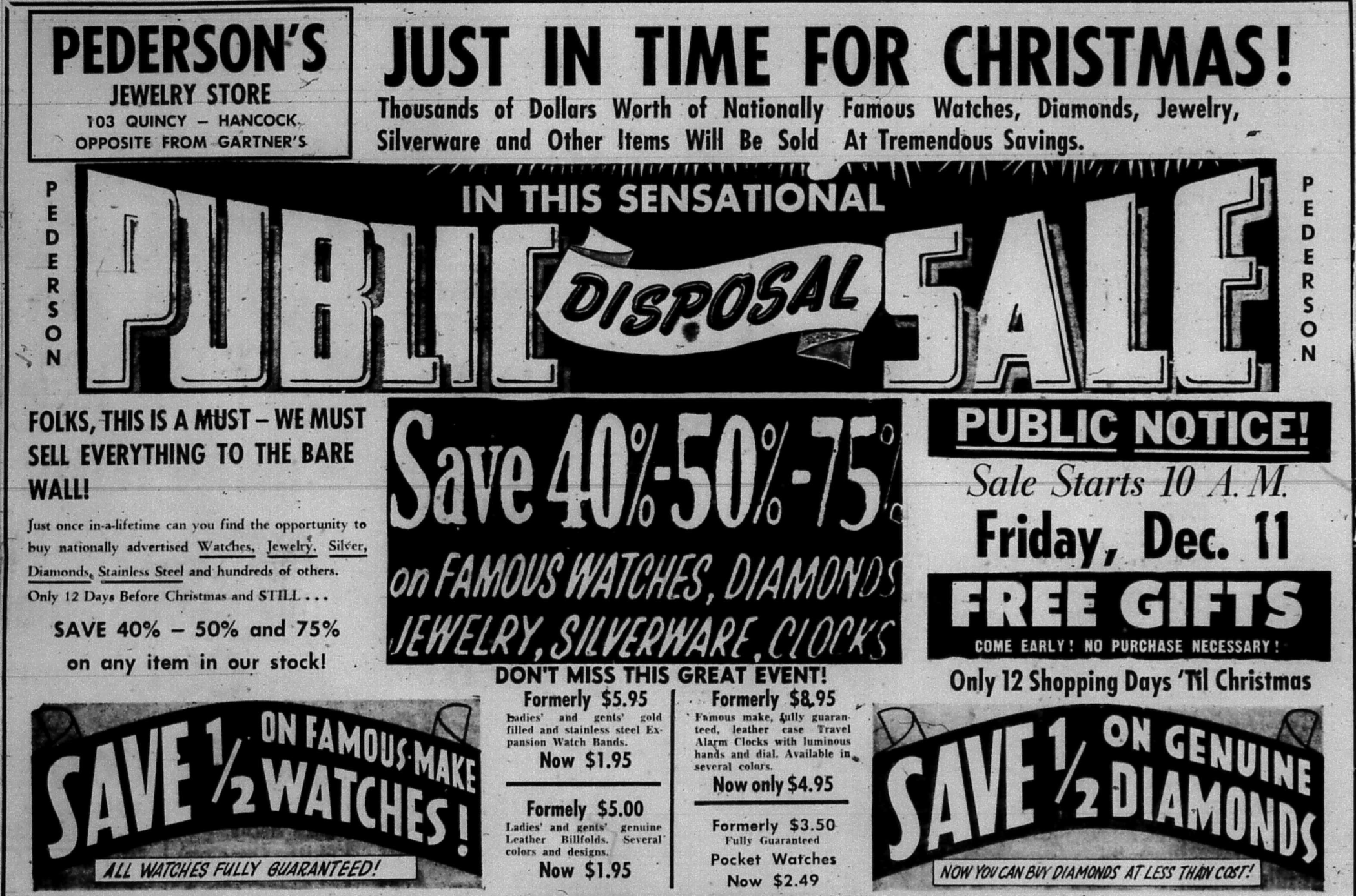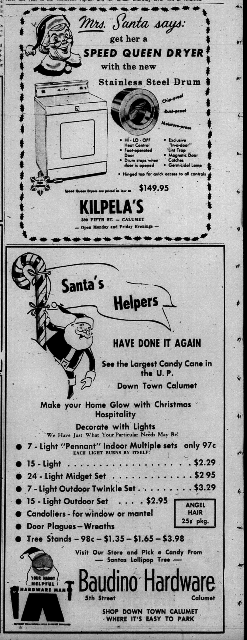 These ads are all from The Daily Mining Gazette, published on various days in December 1949 (click on an image to enlarge it).