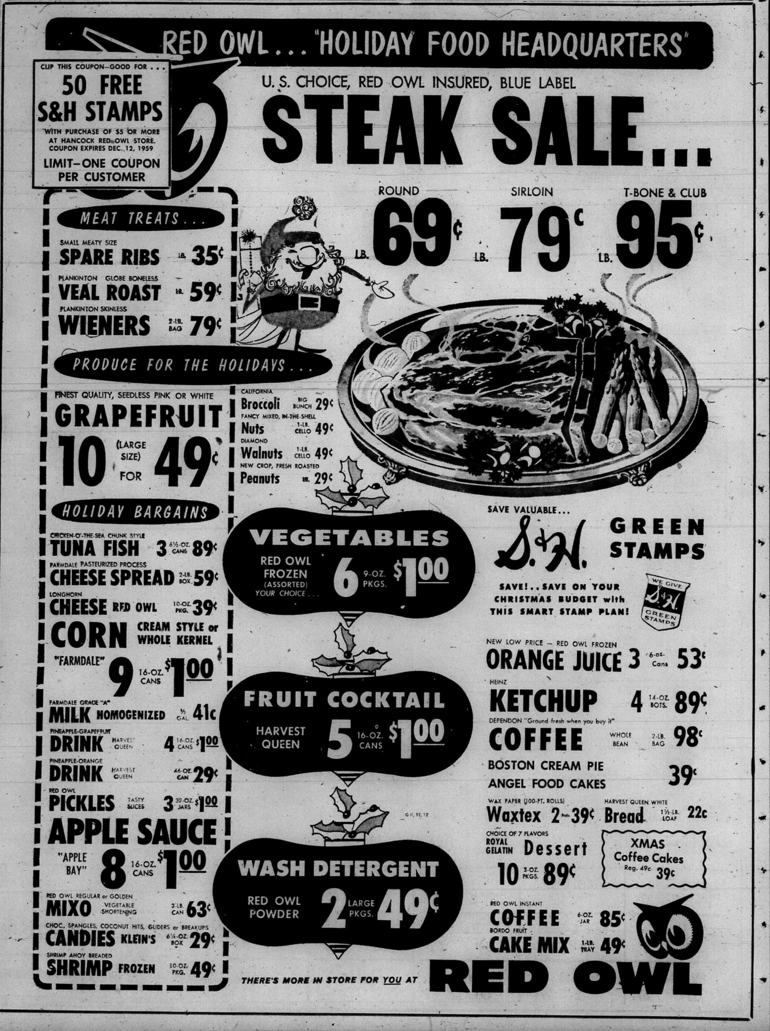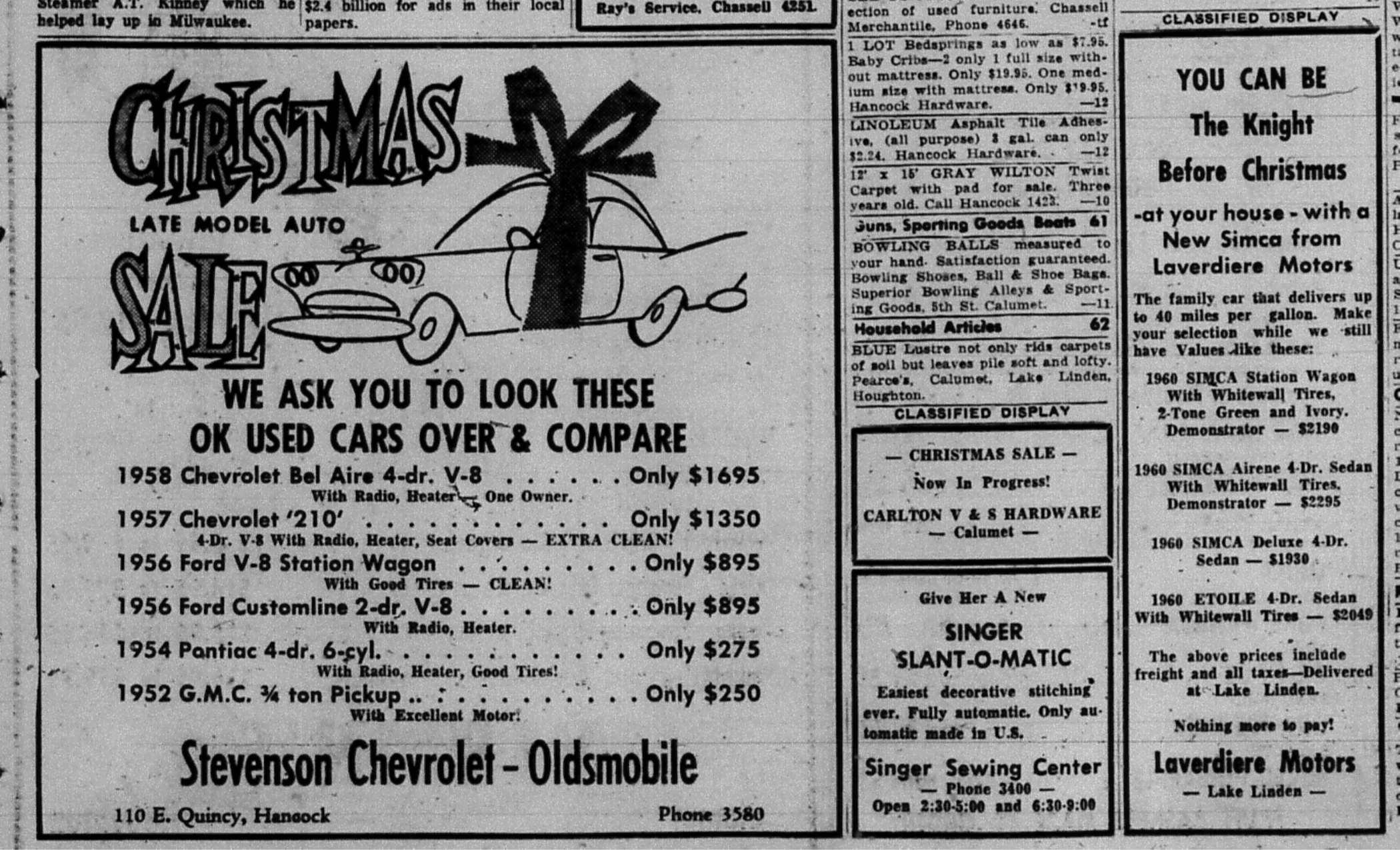 These ads are all from The Daily Mining Gazette, published on various days in December 1959 (click on an image to enlarge it).